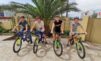 There is hot and cold drinking water on each floor. On the ground floor there is a kitchen-dining room with all necessary equipment and utensils, sugar, tea, barbecue and tables where you can sit in the courtyard decorated with exotic flowers. In addition, a variety of excursions and bicycle rental are offered. A shuttle service is available. It offers Wi-Fi, luggage storage, laundry facilities.