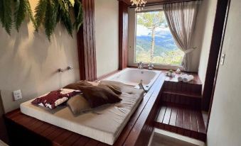 Lugar maravilhoso, paisagem incrível! Fica localizado no alto de uma serra e de lá se avista toda a cidade e o vale, com montanhas no horizonte. Nossa suíte era maravilhosa, com hidromassagem (não usamos), banheiro fabuloso de grande e muito requinte. A área externa é um show a parte, com muito verde, piscinas e área para caminhar.