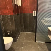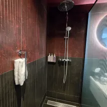 كنا نقيم في الطابق الثامن، وهو ما كان مخيفًا بعض الشيء بالنسبة لي لأنني لا أحب الأماكن المرتفعة، لكن كل شيء كان على ما يرام وشعرتُ بأمان شديد. كانت المصاعد سلسة وسريعة للغاية، وكانت الغرفة أنيقة وعصرية. شمل الحمام دشًا كبيرًا مثاليًا لقضاء وقت ممتع! وعدة زجاجات فاخرة من الشامبو والبلسم وغسول اليدين والجسم.
