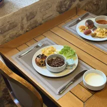 Завтрак был включен в цену и проходил в очень уютном кафе неподалеку, поел вкусно и сытно!