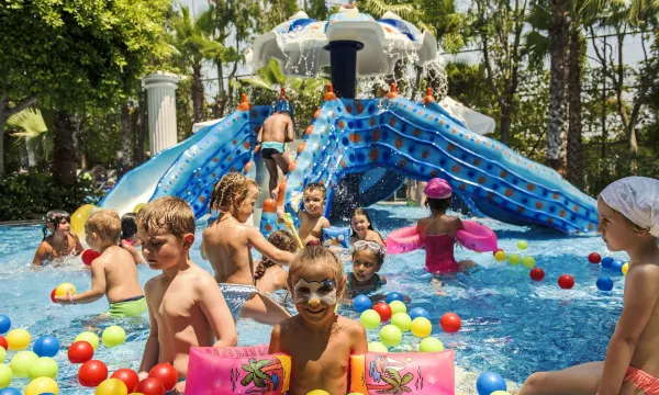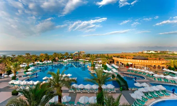 Location & Access: The hotel is conveniently located in Lara, just 15-20 minutes from Antalya airport, making it ideal for families and travelers seeking a short transfer. The lively surroundings offer various shops and resorts, enhancing the overall accessibility.