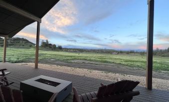 If you like coffee at sunrise and a glass of wine at sunset this is the place for you. I brought my wife and 2 boys (4th grade and 7th grade) for their first trip west. This place made the trip extra special. The views, the elk, and the wildlife in general (bring set of binoculars or a spotting scope) surrounding this property are fantastic. The drive to "town" is minimal and a good grocery store is close. We would love to come back.