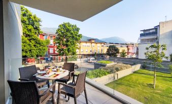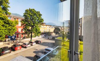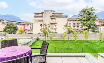 Modern, cosy, comfortable apartment block "San Pietro". 20 apartments in the property. Arco, in a central, busy position residential area (villas), 4 km from the lake, 4 km from the beach, 200 m from the river. Roofed, parking at the house, public parking 20 m on the road. Grocery, supermarket, shopping centre, restaurant, bar, bakery, café, pedestrian zone, bicycle rental, pub garden, bus stop 50 m, pebble beach "I Sabbioni" 4 km, 50 m, outdoor swimming pool 1 km, thermal baths "Garda Therme" 4 km, bathing lake 4 km, lake di Garda 4 km. Sports harbour 4 km, golf course (18 hole) 2 km, surf school 4 km, indoor tennis centre 4 km, minigolf 5 km, riding stable 3 km, children's playground 200 m, fishing possibilities 1 km. Nearby attractions: Castello di Arco 500 m, Riva del Garda 4 km, Trento 40 km, Climbing Stadium Arco 1 km, Stazione dei Bus Arco 300 m. Well-known ski regions can easily be reached: Madonna di Campiglio 68 km, Pinzolo 58 km. Well-known lakes can easily be reached: Lago di Toblino 20 km, Lago di Ledro 14 km, Lago di Garda 4 km. Hiking paths: Le Cavre 1.5 km, Pista Ciclabile Riva-Sarche 50 m, Ferrata Colodri 500 m. "Arianna", 3-room apartment 83 m2 on 2nd floor. Spacious, modern and cosy furnishings: living room with 1 double sofabed (138 cm, length 193 cm), TV. Exit to the terrace. 1 room with 1 bed. 1 double bedroom. Open kitchen in the entrance (oven, 4 induction hot plates, freezer) with dining table. Exit to the terrace. Shower/bidet/WC. Heating, air-conditioning. Large terrace. Terrace furniture, sitting area. Beautiful view of the town. Facilities: iron, hair dryer. Parking space n 145 (roofed, 1 car). Please note: non-smokers only. Maximum 1 pet/ dog allowed. IT022006C25D99ACCV