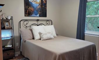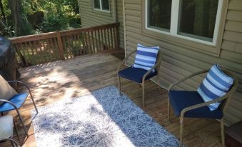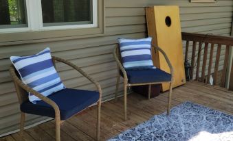 Welcome to our inviting, cozy home. Indoors, the home boasts of many rooms to gather and enjoy. Comfy beds and blackout curtains make for a perfect night’s rest after a day on the course. Outdoors, our back deck area, disc golf basket, fire pit, and gas grill allow for time to relax.