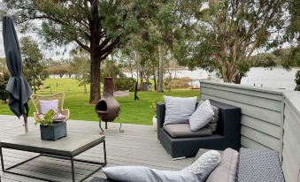 Gorgeous Riverside Cottage with separate Bunkhouse, set on an idyllic 2 1/2 acres. Perfect setting for family or friends getaway. Features an In ground trampoline, half basketball Court, private Jetty, Boat Ramp and beach. Perfect for fishing and boating enthusiasts, watching life on the river and experiencing stunning sunsets. For the Wine Enthusiasts, it is short trip by boat, or car, to some fabulous wineries including Tahbilk and Michelton.About pets:Pets allowed: less than 55 lbs per pet (limit one pet total).Guests are responsible for cleaning up after Pet.About checkOut:Check out before 2:00 PM.About children:Children allowed: ages 0-17.About checkIn:Check in after 2:00 PM.About smoking:Smoking is not permitted.About events:No events allowed.