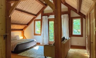 Our lovingly maintained cottage is located on a wooded acre adjacent to our home. You will see trees and greenery from every window. Parking is available directly adjacent to the cottage with easy access to the front door - just 2 steps up. On the back of the cottage is a large outdoor deck. Guests of our cottage will enjoy the feeling of being in the woods with all the urban conveniences of Bainbridge just minutes away. If you are not feeling up for driving to trails, there are trail heads just a few minutes away on foot from the property. Otherwise, great hiking trails are as close as a 5 minute drive. Bloedel Reserve, which is one of the furthest attractions on the island, is about a 20 minute drive. Winslow, the main town area and ferry terminal, is a 10-15 minute drive. Lynwood center is a 4-minute drive and boasts a great range of offerings: casual dining, cafes, a bakery/shop, cocktail bar, and even a movie theater!