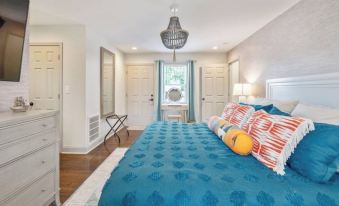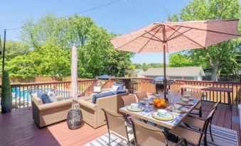 Enjoy lounging by the 26,000 gallon pool, the two KING Beds, grilling out on the deck, or making s’mores with friends and family by the Solo Stove fire pit. Plenty of shade provided with umbrellas then during nightfall illuminate the property with the Edison lights that line the deck and back yard. Plenty of stars to be seen outside the city as well! You may lose track of time laughing and hanging out until late.