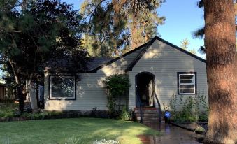 Welcome to your home away from home in beautiful Bend, Oregon! This renovated 1942 industrial modern 2-bedroom, 1-bath mill house combines vintage charm with modern comfort and style. Located in a prime spot close to all the best Bend has to offer, this pet-friendly home features a large fenced yard for your furry friends and a trampoline for the kids. Everything you need for a comfortable vacation, you will want to stay a month or more.