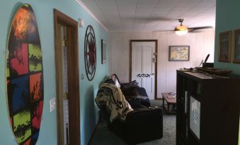 A quaint 2nd story (so there are stairs to get to the apartment) 1 bedroom apartment that has all you need. Comes with a TV that you can watch your personal streaming services, and wifi to keep connected. The bedroom has a full size bed for 2, and the living room has 1 queen size futon/couch. Max occupancy is 4 adults or 2 adults and 2 children (more than 2 children will require approval from owner prior to acceptance of the reservation). A full kitchen with electric stove and a full size refrigerator. Decorated in beachy decor.