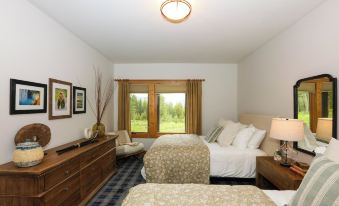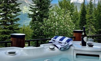 Outside, a private hot tub awaits, inviting you to soak in its warmth while immersing yourself in the grandeur of the surrounding wilderness. In the evenings, gather around the fire pit under the starlit sky, sharing stories and creating memories that will last a lifetime.