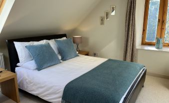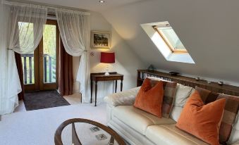 The Loft occupies the top floor of the store building of a former jute mill. It is a totally self-contained apartment which is accessed by an outside staircase. It has sloped ceilings with roof windows to make the most of the breathtaking views across the rivers, tree-tops and to the hills beyond.