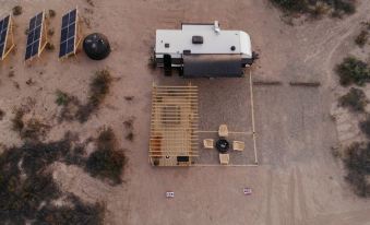 Starlight Sanctuary offers a state-of-the-art 2023 RV on a 10-acre 100% off-grid lot. This uniquely designed desert experience comes fully equipped with fresh running water (including a flushable toilet and shower), solar power, two air conditioning units, and wi-fi. With a capacity of up to 6 guests at a time, the 32' RV contains: Master Bedroom, Full Kitchen, General Area (w/Bunk Beds) & Outdoor Pergola/Deck with Charcoal GrillAbout pets:No pets allowed.About checkOut:Check out before 11:00 AM.About children:Children allowed: ages 0-17.About checkIn:Check in after 4:00 PM.About smoking:Smoking allowed: in designated areas.About minBookingAge:Minimum age to rent: 18.About events:No events allowed.