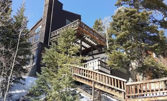 With unparalleled year round access and outstanding views, this cedar sided contemporary home is unique in the Brian Head area. Accessed via a fifty foot bridge, this home sits on the Ridgeview mountainside, with unrestricted and spectacular views overlooking Brian Head mountain, the ski resort, the Bristlecone Pond, and the entire Brian Head town valley below. It is a two minute drive to either main ski resort parking area. Completely renovated with expansions in the 1990's and 2000's, and recent yearly renovations and upgrades, this home has four bedroom areas (one a master suite complete with functioning fireplace, 43 inch Samsung TV, and Jacuzzi bathtub in master bathroom), one full bathroom with Jacuzzi bathtub, one half bathroom, one "nature bedroom" with functioning fireplace, living room with 55 inch Samsung LED television and gas fireplace, modern kitchen with all amenities, loft / office complete with two computer monitors for your XBOX/Playstations with gas fireplace, fast Wi Fi via an ORBI mesh network throughout the house, an unbelievable view of the mountains, and a Solarium with a JACUZZI J315 3 man hot tub, small gym, and sauna. A laundry room with modern washer / dryer, and bunk beds for four children, complement the basement, along with a home theater room which contains a 55 inch Samsung QLED television, again with XBOX/Playstation hook up capability and a gas stove fireplace. Satellite TV, computer terminals, WiFi, telephones, and internet are included. Because of the multiple level nature of this house, it is not wheelchair accessible and not suitable for individuals with mobility disabilities. It also might not be suitable for some elderly, depending upon their physical conditioning. The rental has beds for up to six adults and four children / teenagers / small adults. (1 King, 1 Queen, 1 Queen, 2 Twin bunk beds). Because of the heights involved, vigilance with small children is necessary.