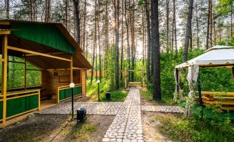 Distinctive features of the rooms: a separate entrance from the complex's territory, which, bypassing the narrow corridors of ordinary hotels, will help to avoid unexpected meetings. Excellent sound insulation allows you to relax without thinking about your neighbors, and thus provides complete freedom of action and privacy. Fashionable interiors made of natural wood in conjunction with clean pine air will make your vacation as enjoyable as possible. A separate equipped area for cooking shashlik or barbecue over an open fire; the ability to use other club services; a wide range of entertainment. Each hotel room has an air conditioner. An autonomous heating system operates.