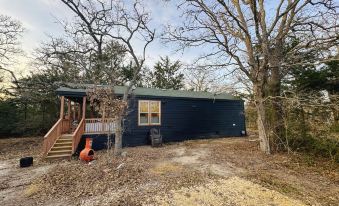 Welcome to our charming little black cabin nestled by Lake Somerville in Central Texas. A cozy retreat surrounded by oak trees. Step inside to a warm ambiance, with a reclaimed wood ceiling and a fireplace, perfect for those cozy nights. Enjoy the outdoors with a fire, covered front porch, and the serene beauty of the area. Pet-friendly, this cabin offers a luxurious queen-size bed ensuite and all the amenities for a snug stay. Relax, unwind, and make the most of this serene getaway.About pets:Pets allowed: dogs (limit 2 total).Pets are not allowed in bed. There is a pet fee..About checkOut:Check out before 11:00 AM.About children:Children allowed: ages 0-17.About checkIn:Check in after 4:00 PM.About smoking:Smoking is not permitted.About minBookingAge:Minimum age to rent: 18.About events:No events allowed.