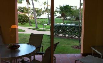 This place location is amazing, no where else in Palmas Del Mar you will have two luxurious pools next to your balcony at ground levels. If you get tire of the pools just walk a few minutes to the beach or a few seconds to a small lake where you can feed the wild life (fish, exotic birds and turtles!!). If you do not want to walk a few minutes just ride the Villa's Golf Cart to where ever you desire inside the gated community of Palmas Del Mar. Golf carts has their own exclusive road everywhere inside Palmas so you can drive safely around without using your Car. If you like night life without the chaos of San Juan you will love Palmanova, a Square(Plaza) in Palma's where tourists and locals go to have a good time, eat at the restaurants all without leaving gated Palmas Del Mar. Having the location next to the Wyndham provides the convenient of just walking back to your place after having a couple of drinks! If you like nature, Palmas even has a mangrove forest with a boardwalk to explore the mangrove. With a Marina available inside Palmas you can charter a boat to Vieques, Culebra or Isla de Monos where you can scuba dive, snorkel or just relax in a deserted beach.
