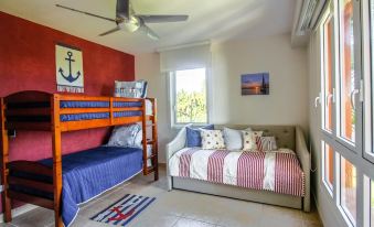 The third bedroom has sleeping space for four with twin-sized trundle beds and bunk beds. For your convenience, additional air beds and linens are provided.