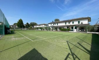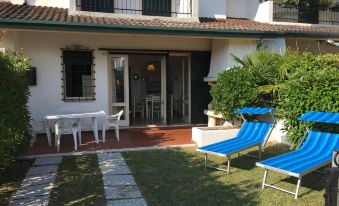 Two-storey terraced house for up to six guests, located in a residence with a shared swimming pool and tennis court, just 490mt from the beach. The property features a private garden, and a spacious balcony shared by the bedrooms. The ground floor is composed of a well equipped kitchen, a living/dining room, a bedroom with two single beds, and a half bathroom (only toilet). On the upper floor you'll find two double bedrooms, and a complete bathroom with a shower over bath. One uncovered parking space is included. A/C is available at an additional cost (check below).°Swimming pools are open seasonally (mid June/early September): exact dates may vary due to weather or maintenance