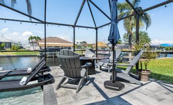 Rent a boat & have it delivered to the house to leave there & head directly to Sanibel or Captiva. Manatees & dolphins are often seen right from pool! New kitchen appliances and washer & dryer. This vacation home has a great location in the desirable SE Cape Coral, close to downtown and all the amazing restaurants. Also just a few miles from the Westin & Cape Harbor waterfront restaurants & Yacht Club beach. The kitchen is fully stocked to make your home cooked meals. Enjoy the coffee bar with your coffee by the pool watching the sun rise. Pool area with outdoor kitchen, bar, 65 inch TV, fire pit. This house has everything you need to feel right at home.