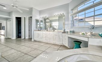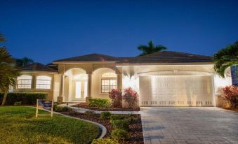 Villa Boaters Dream is anything but an ordinary Cape Coral vacation home thanks to its unique interior design and decorator accents. Classic seaside style - white furniture is everywhere, and the dominating colors are Mediterranean, with shades of blue and light green. The overall image is rather like a beach cottage, further enhanced by the color-matched decorations, pictures and accessories. From the front door, you can see all the way through the house to the water.