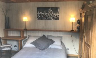 Accessible only by footpath of 150 m near .Maison independent owner, facing south-east with mountain views, wooden terrace, garden furniture, garden, barbecue on foot. Pets allowed. East facing living room with kitchenette (microwave oven, raclette, steamed, coffee machine, blinder, mixer, toaster ...) sofa, TV, free wifi .Triple independent, 140-bed, slatted base, exhibition is, sheets provided and beds made, Bathroom with sink, shower (120x80) and toilet, towels provided.