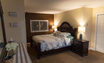 Upstairs are the Master and Guest bedrooms. In the Master bedroom, you will find a spacious King size bed, 52" LG HDTV with a ROKU attached for access to Plex, Netflix, Hulu, and Youtube. There is also a Queen size sleeper sofa for extra guests. The Master bathroom features both a Jacuzzi tub and an overhead rainfall shower head.