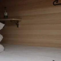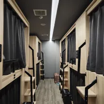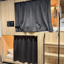 Bed sheets are clean, with charging ports and a small foldable table. There's a place to hang your towel within each bed which is a plus point!