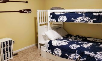 With two queen rooms and two bunk rooms, the home is great for up to two families. The bunk rooms both have twin over full bunk beds with one also having a full size trundle bed.