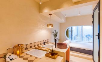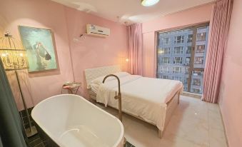 Romantic City View Two-bedroom One-living-room Double Bed Suite 【romantic Bathtub Giant Screen Projection】