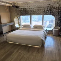 أذهلني المنظر البانورامي للمدينة، الذي يكاد يكون 360 درجة، كل شيء كان نظيفًا للغاية، ومجهزًا بأحدث وسائل الراحة، حتى أن هناك شاشة سينمائية في الغرفة، لمسة رائعة.