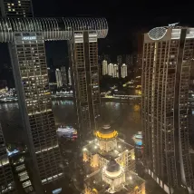 كانت إقامتنا في تشونغتشينغ رائعة بحق. الفندق الذي اخترناه، بإطلالاته الخلابة على النهر، كان بحق ساحرًا. من الطابق الثامن والثلاثين، كان منظر النهر ساحرًا. كل صورة للمشهد الليلي تستحق أن تُنشر على إنستغرام!
