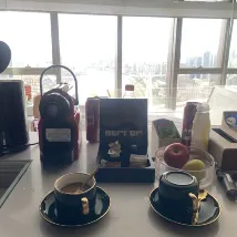 كانت الغرفة مجهزة تجهيزًا جيدًا، بما في ذلك آلة صنع قهوة، وكبسولات قهوة، وكبسولات حليب. كما كانت هناك أكواب نبيذ في الدرج، مثالية لمشروب في وقت متأخر من الليل مع الأصدقاء. كان جهاز العرض في الغرفة شديد الوضوح، مما يتيح لك مشاهدة مجموعة واسعة من الأفلام والمسلسلات التلفزيونية.