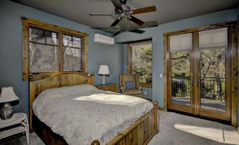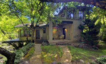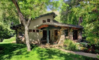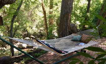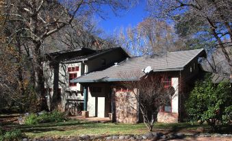 Nearly 400 feet of the creek runs through our property. Our lovely home is warm and inviting, encouraging relaxation and and a sense of serenity. It is perched over (literally) the flowing creek and nestled under the towering cottonwoods, sycamores and pines. Dramatic red rock canyon walls surround us. Lot's of privacy and walking distance to the gourmet Indian Gardens Cafe.