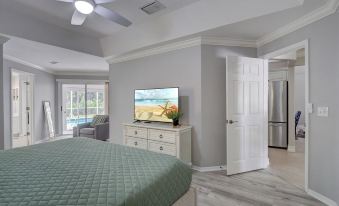 You’ll love the chef's kitchen, with high-end appliances, plenty of counter space, and everything that you need to prepare a family meal. When it’s time to serve a meal, there’s a dining room, a breakfast nook, and seating at the bar or the enclosed lanai. There are 3 seating areas inside - a formal living room, a cozy den/TV room (both with big flat screen TVs), and the lanai (which is fully under AC). The pool deck features a large dining table, or you can also relax on one of the lounges by your private heated pool while the grill master cooks up something delicious on gas grill. After a day at the pool or the beach, you can relax on one of the couches in front of the three large HD TVs (with cable and WiFi) and enjoy a drink or two.