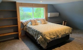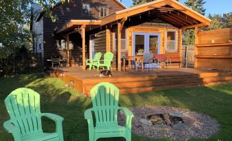 This peaceful oasis is literally a couple blocks away from parks, grocery stores, restaurants, and more. The cabin itself is charming and lovely with the garden and deck overlooking the mountains!