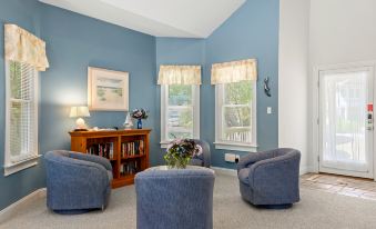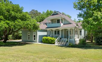 The calming allure to Currituck Club House 108 is instilled by its location, nestled against Live Oak woods and in the tranquil interior of the house itself. Subtle color and coastal-inspired décor cater to the peace you seek from the Outer Banks. The backyard offers much privacy and has a pool, hot tub, porch with grill and screened porch with patio table for enjoying an evening meal.