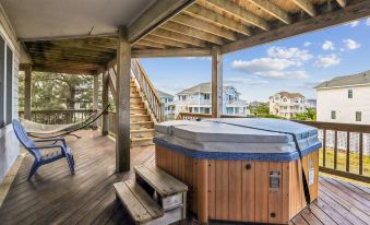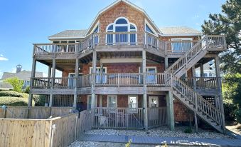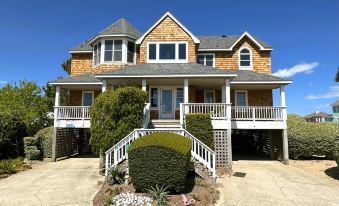 Easton's Beach is located in one of the most stylish communities of the Outer Banks; The Villages of Ocean Hill. This five bedroom model home features ocean views, spectacular sunsets and truly magnificent sunrises. Convenient to the Corolla Lighthouse, exquisite dining, The Whalehead Club and shopping galore!