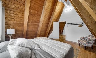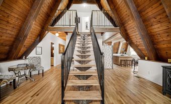 We stayed for culver graduation and this cute A frame sleeps a large group very comfortably. Nicely stocked kitchen!