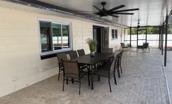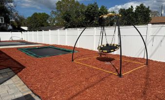 We accommodate late check-out and early check-in requests whenever possible. This spacious five-bedroom home sleeps 10 guests (or up to 12 with sleeper chairs and extra linens) and is designed for family fun and relaxation! The master suite has a king bed, Smart TV, and en suite bathroom. The other four bedrooms include one with a king bed, two with queen beds, and a smaller room with two twin beds. These rooms share a full bathroom with a shower. Upon request, the twin beds can be converted into a king with a twin-to-king converter set, and a Pack 'n Play can also be provided. Outside, the yard has a screened-in, oversized private pool, a kids' swing, a basketball hoop, a charcoal BBQ, a seating area, and a dining table for eight—perfect for enjoying time outdoors. The home is located in Winter Haven, the Water Ski Capital of the World, this home is just minutes from amazing water sports, beautiful lakes, and top attractions. LEGOLAND is only a 7 to 8 minute drive away, and Disney World and Universal Studios are less than an hour away.About pets:No pets allowed.About children:Children allowed: ages 0-17.About smoking:Smoking is not permitted.About events:No events allowed.