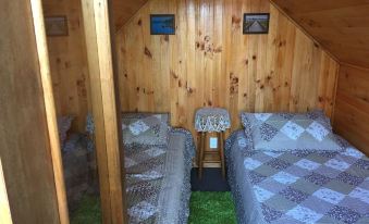 The Glamping has two single beds inside, sockets, light, is surrounded by nature.