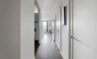The unit is secured by smart lock entry, welcoming you into a spacious living space.