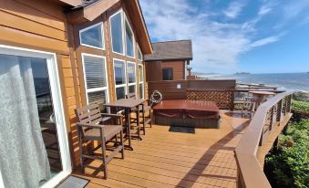Enjoy some quiet time away at this beautiful ocean cabin fully stocked with all the amenities to make you feel right at home! Step outside and enjoy the fresh air on the private deck and full size hot tub (jacuzzi) or enjoy some dinner and drinks on the open deck overlooking the majestic Pacific Ocean!