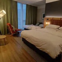 كان الفندق على قدر توقعاتنا. كانت الغرفة نظيفة ومريحة للغاية. كانت منطقة المسبح الداخلي والخارجي والساونا رائعة حقًا! صالة اللياقة البدنية إضافة رائعة. كان الإفطار لذيذًا جدًا وخياراته متنوعة! أحببنا كل شيء!
