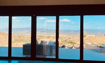The home was situated at the foothill of the hills with no neighbors to the back of the home and an beautiful view of the town below to the front of the home. The property was modern and very well designed and built. The inside of the home was clean and very inviting. The rooms were spacious and enough the house a party of 10. 3 of the 4 rooms had built in AC which was great to keep the rooms cool during the summer heat. The one room without the AC had a swamp cooler which did an ok job keeping the room cool. We stayed at the house at the end of August, temps were 98-103 degrees farenheit so it was HOT! There were two downsides to the home which affected our stay the first was that there are no AC units in the dining/living room area so that whole area got very hot to the point that it was not an enjoyable area to be in and we were not able to make use of it. The second was that the home runs off of solar power and back up batteries. On two nights, the batteries stopped working in the middle of the night causing all electricity to the house to be lost therefore AC units stopped working and there was no electricity to the entire house.
