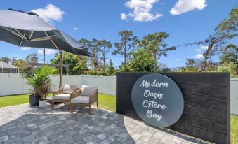 Welcome to Modern Oasis Estero Bay - a serene retreat designed to give you the ultimate vacation experience! This beautiful home has 4 bedrooms plus a bunk room, 2 bathrooms, and a great room overlooking the backyard oasis with heated salt water pool & hot tub, outdoor grill and more. Modern Oasis Estero Bay is the perfect place to getaway for a golf trip, family vacation, or weekend with friends! Located in a quiet neighborhood and backing onto a golf course and Estero Bay, it feels like a private tranquil retreat with a backyard oasis. Watch the sunset over the bay or watch the game on the outdoor TV while grilling for friends - this house offers it all! The 4 bedrooms plus bunk room are spacious and thoughtfully designed with all the amenities you need to feel right at home. The fully equipped kitchen is the perfect gathering space to cook and dine with your friends and family and make memories to last a lifetime! Countless golf courses nearby, shopping and restaurants at Coconut Point, a short drive to beautiful Barefoot Beach, and more - your dream vacation awaits at Modern Oasis Estero Bay! About pets:No pets allowed.About children:Children allowed: ages 0-17.About customRules:Guests must sign liability waiver and agree to house rules prior to check-in..Quiet hours outside from 10pm-7am..About smoking:Smoking is not permitted.About events:No events allowed.