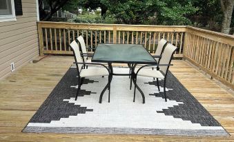 This is a great house! I love having two primary suites (one on each level). There’s plenty of space for everyone with large bedrooms and an extra den upstairs. The backyard is totally private with a huge deck and cozy screened porch. About pets:No pets allowed.About checkOut:Check out before 11:00 AM.About children:Children allowed: ages 0-17.About checkIn:Check in after 4:00 PM.About smoking:Smoking allowed: in designated areas.About minBookingAge:Minimum age to rent: 25.About events:No events allowed.