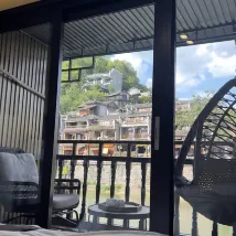 The place and view over the river and the town was beautiful. Room is small but cozy (if you're really tall maybe won't fit in the bathroom tho). Balcony to sit in the swinging chair to relax is great. Would recommend