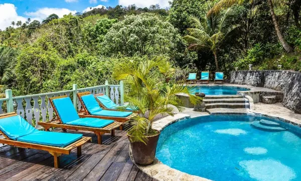 We spent 8 unforgettable nights at Fond Doux Eco-Resort in March and can’t recommend it highly enough. The weather was spectacular — 78–86°F each day — with the occasional refreshing rain shower that passed quickly and left everything even more vibrant. We stayed in two of the resort’s cottages, each designed in a charming island cabin style reminiscent of Swedish stugas but with a beautiful French Creole twist—gingerbread woodwork and intricate cutouts that made each building feel both rustic and refined. Both cottages were equipped with modern, efficient air-source heat pumps that kept the interiors delightfully cool and comfortable with whisper-quiet operation. Our favorite was the hilltop cottage: perched high in the trees of a steep, working cocoa plantation; it offered complete privacy, a private plunge pool, and a front-row seat to the lush surroundings. We woke up each day to the sight of ripening bananas, cocoa pods, and vibrant flowers just outside our window, accompanied by a constant parade of hummingbirds, finches, and countless other tropical birds. At night, we drifted off to a natural symphony of crickets and frogs — no traffic, no neighbors, just the sounds of the rainforest. Fond Doux offers a quiet, warm, and technology-light atmosphere that invites you to truly unwind. The cottages are beautifully appointed with luxurious king-sized beds, outdoor showers thoughtfully integrated into each room, coffee makers, refrigerators, and even transformers for charging devices — but notably, no televisions, which we saw as a real plus. The absence of screens helped us unplug and enjoy the natural surroundings even more. The water was clean and fresh-tasting, and refill stations around the property made it easy to stay hydrated while avoiding single-use plastic bottles. Whether we were sipping a drink at the peaceful patio bar, swimming in one of the pools, or enjoying rich breakfasts and delicious dinners at the open-air restaurant, we felt completely at ease and immersed in the setting. The decor throughout the resort is beautiful and tasteful, offering a strong sense of place and charm — all at a fraction of the cost of nearby ultra-luxury resorts. That said, there are small compromises and signs that some original material choices haven’t weathered perfectly: some bathroom tile work shows patching and a vinyl decking experiment on a few walkways, and the pool deck hasn’t fared well under the island sun. While delicious and welcoming, the restaurant can occasionally get overwhelmed during busy times, leading to some variability in service timing. None of this detracted from our overall experience. The new lap pool under construction during our visit suggests that the property continues to receive thoughtful investment and expansion. We mention these minor flaws only to note that if you’re expecting $1,000+/night stone-foundation villas, tennis courts, and ultra-modern suites, there are resorts down the road built to that global lux
