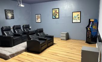 Located near the end of the court. Relax in the heated pool, enjoy a movie in the in-home movie theater, enjoy cornhole or play the arcade. Short drive to the parks, restaurants and supermarkets. Easy access to local freeways and 30 minutes to the airport.