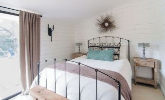 The home is a peaceful retreat. The thoughtful decor creates a sense of balance and is an oasis on the hotter than hot summer in Texas. Only 6 blocks from Main Street, it is about a 5 minute drive from any of the shops, restaurants and tasting rooms. It is too far to walk in the summer heat, but would be comfortable in the spring or fall. The neighborhood is quiet and filled with mature shade trees.